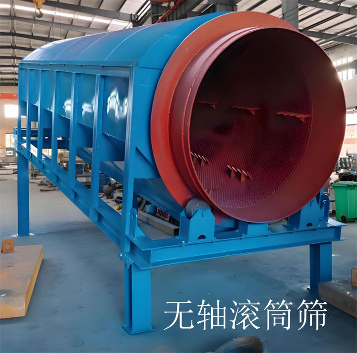 在生活垃圾处理场景中,因垃圾成分复杂,含有大量大块杂物、塑料袋等易缠绕物料,无轴滚筒筛是更优选择,其无中心轴设计可有效处理不规则物料,提升垃圾分选效率。