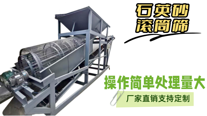 滚筒筛体:由圆筒形筛网或穿孔钢板组成,筛孔尺寸根据石英砂粒径要求定制。